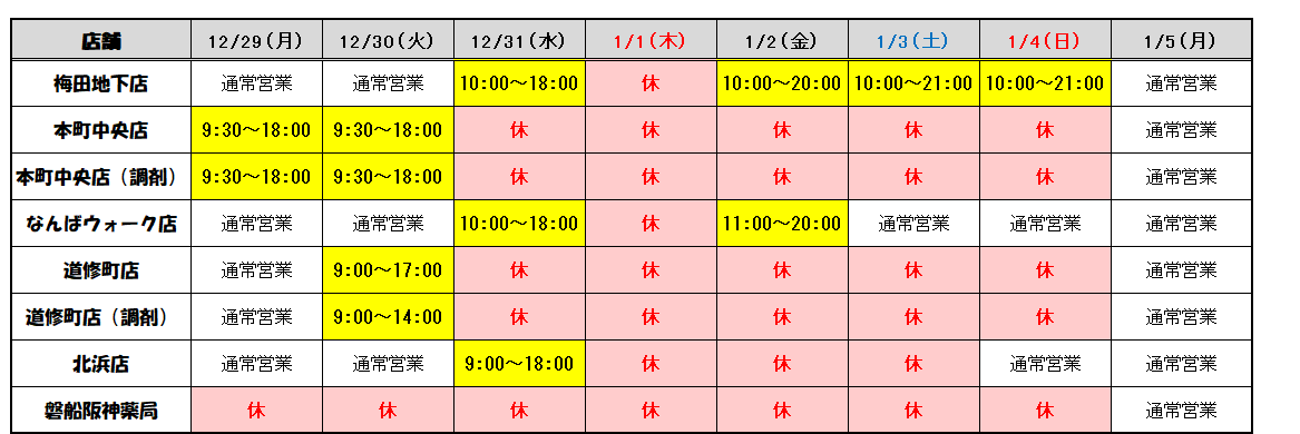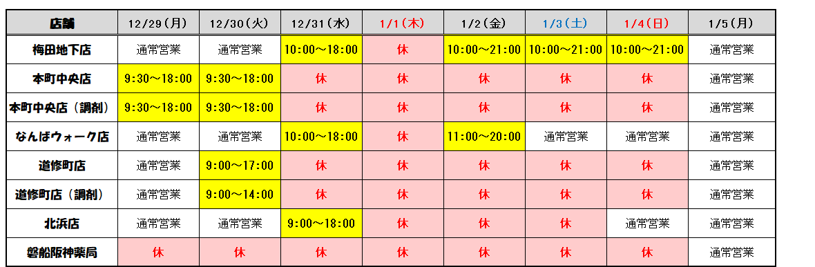 誠に勝手ながら、年末年始の期間中は、営業時間を短縮または休店させていただきます。